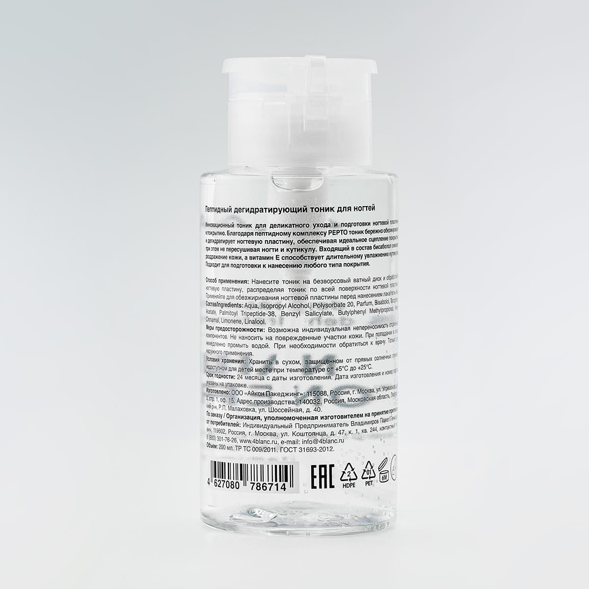 Пептидный дегидратирующий тоник для ногтей 4BLANC, 200мл