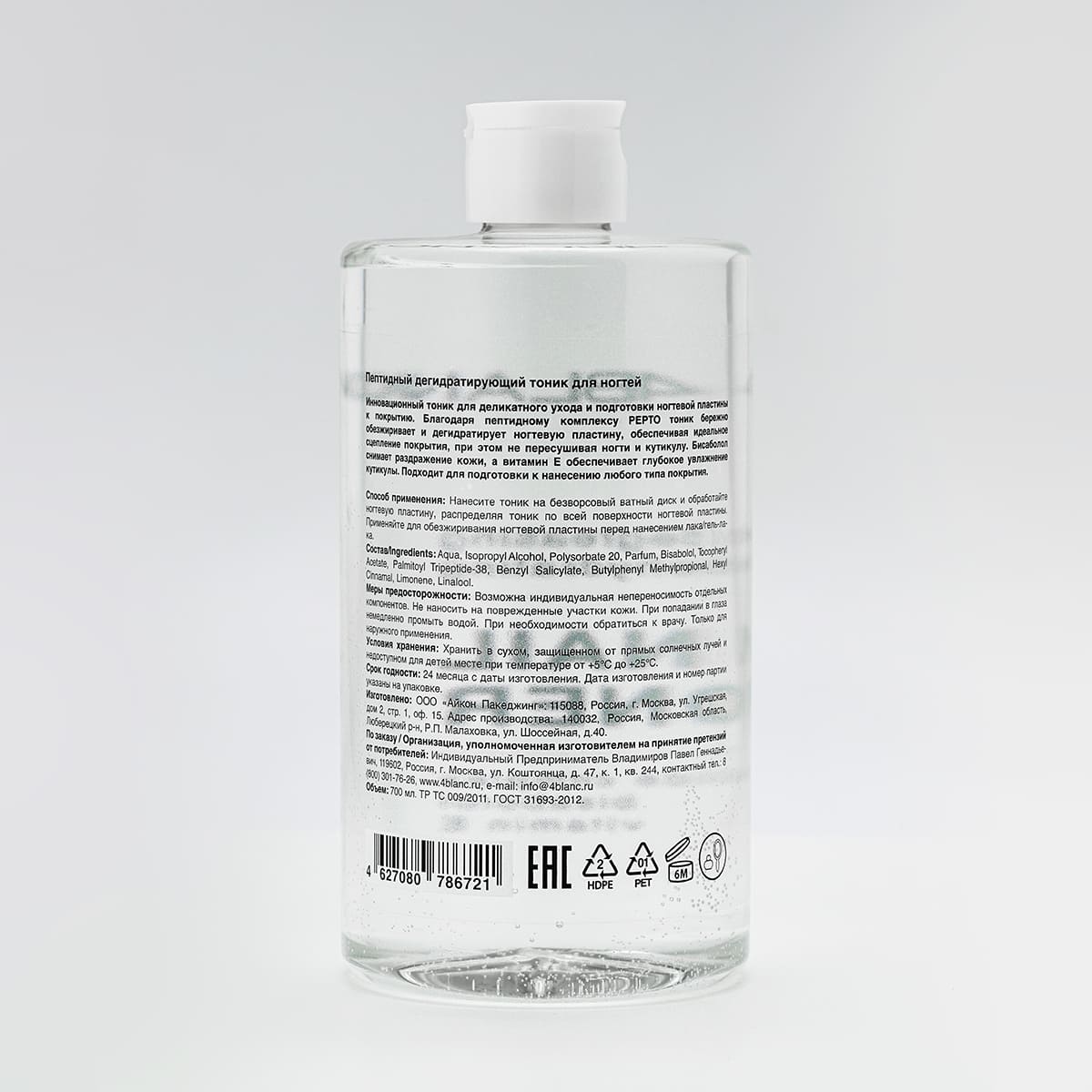 Пептидный дегидратирующий тоник для ногтей 4BLANC, 700мл