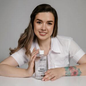Нанесите тоник на безворсовый ватный диск и обработайте ногтевую пластину, распределяя тоник по всей поверхности ногтевой пластины. Применяйте для обезжиривания ногтевой пластины перед нанесением лака/гель-лака.